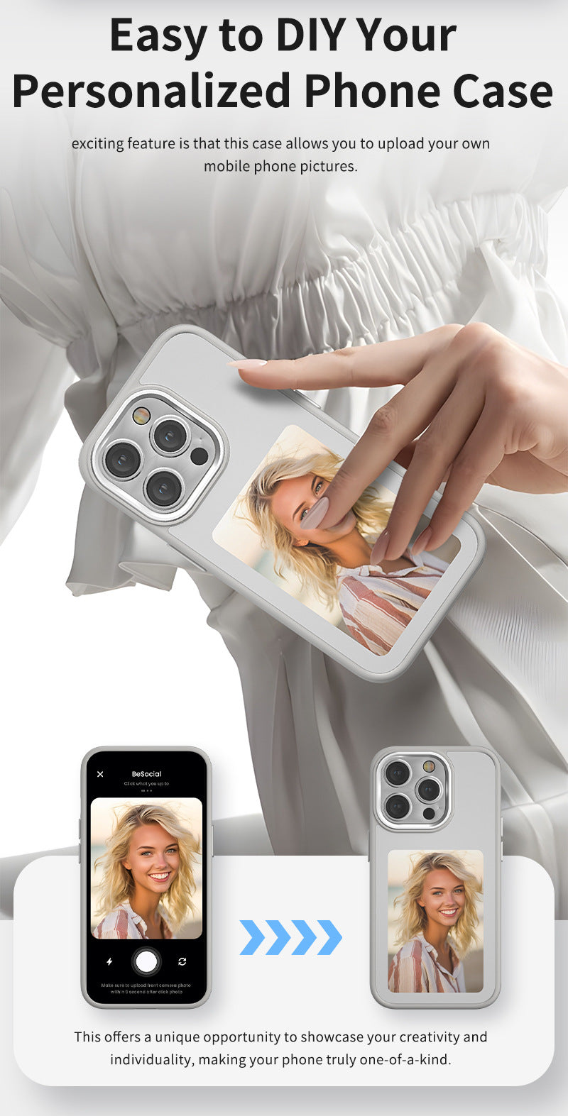 Carry what you love with you and change the image instantly — your memories, your moments, your style. No complications, no limits. Just a phone case that finally feels likeyou.